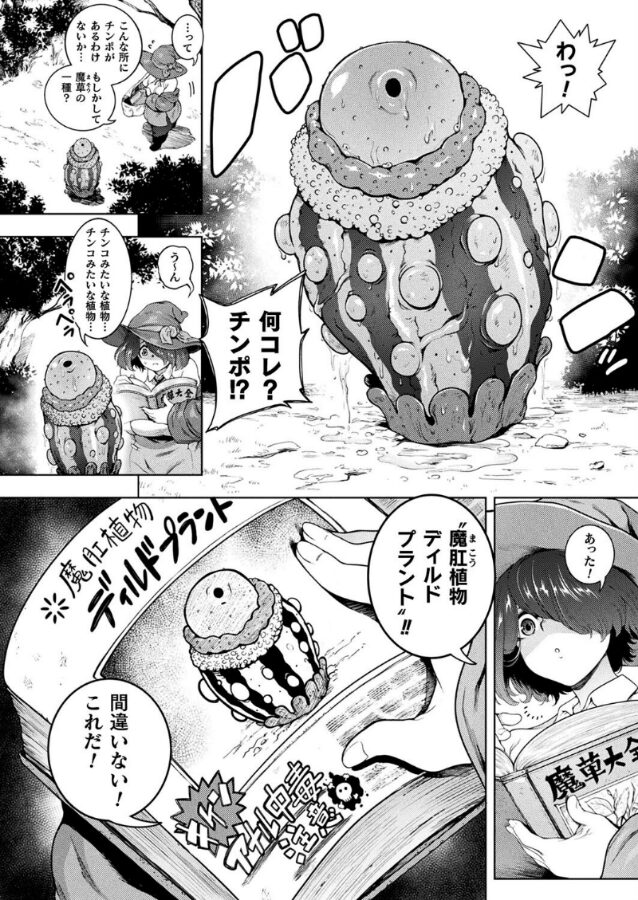 魔法使いが媚薬植物の毒によりアナル快楽中毒化! 媚薬売りの魔法使い、シリカは森に素材採取に赴いた際、たまたま発見したペニス状の不思議な植物を発見する。それは『ディルドプラント』と呼ばれる植物で、早速採取しようと油断したシリカは取り扱いを誤り先端から発射された白濁液を浴びてしまったことで身体が発情したほか、アナルの疼きを我慢できなくなりその場でアナニーをしてしまう。シリカは肛門自慰という未知の快楽に震えていたが、段々自身の指では物足りなさを覚えていたところ、彼女の眼前にはアナルでオナるためにあるといわんばかりに屹立するディルドプラントが生えており……。