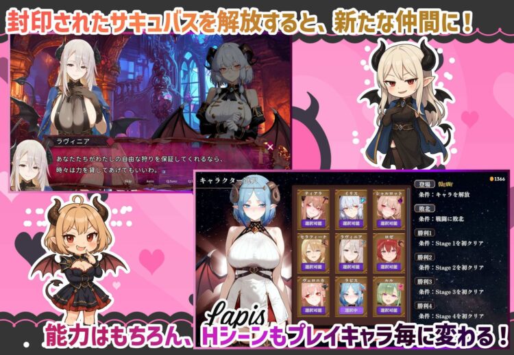 - プレイ内容:ファンタジー,巨乳,アクション,中出し,パイズリ,ハーレム,言葉責め,着衣,男性向け,成人向け,サキュバス/淫魔,男性受け,女性優位