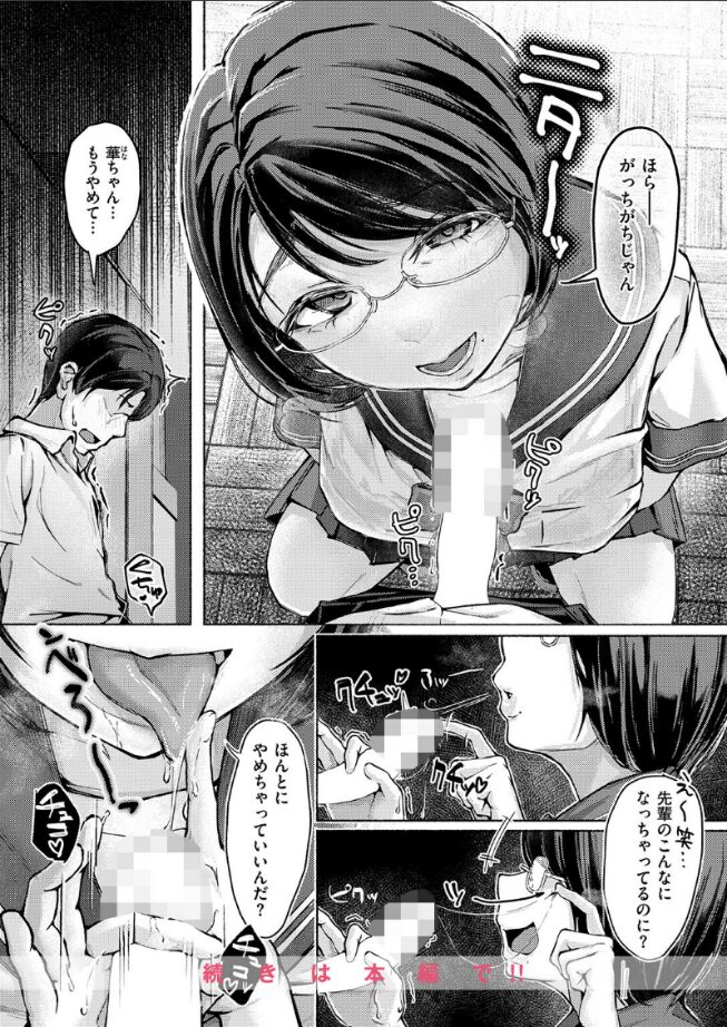 「先輩、ただヤリたいだけですよね?」部活の後輩の華(はな)ちゃんは女子部員たちにいじめられている。今日も牛乳をかけられて一人落ち込む華ちゃん。タオルを渡していろいろ慰めていたら華ちゃんの様子が変わった。「ヤリたいだけですよね?」そして僕が、いじめの現場には絶対来ないこと、注意しとくと言ってて一度もしたことがないこと、巨乳をエロい目で見てること……と全部スバズバ指摘。優しくしたらあわよくば……という僕の目論見は全部バレていた。部室のコーナーに詰められた僕は胸が当たって思わず勃起。そこへ華ちゃんの追求が始まった。「私を本当に大切な先輩って思ってるんならエロいことできないよね?」フェラ、おっぱい見せつけ、パイズリ…華ちゃんの《試し》はどんどんエスカレートしていって……