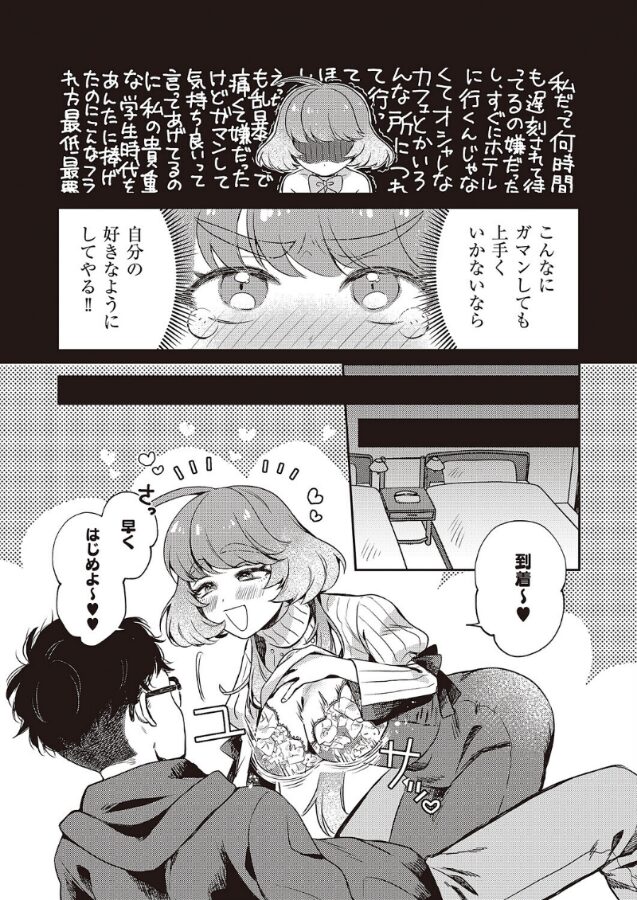 ヤリチンをハメまくって、ディルド扱いするほどのつよつよヤリマン巨乳JD・結(ゆい)♪今回は地味そうなサークルの新入生・狩谷に目をつけて、早速お持ち帰り★しかし、ラブホに着くやいなや狩谷のペースに飲まれイカサレまくってしまいーー!?肉食ルーキー華々デビュー!! しめす先生が描く、ビッチJDちゃんはじめてのアクメセックス♪