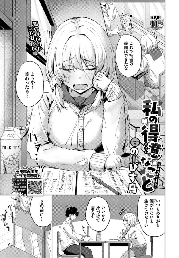 【勉強は苦手だけど…エッチなことは得意なのかも♪】アオハル純愛コミッカー・のーびす鳥が贈る、あまあま初えっち!放課後の教室で紬は彼氏の優に補習に向けての勉強につきあってもらっていた。お礼に何かしてあげたい紬は彼のアソコが膨らんでいることに気づく!エッチなことは初めてだったが、聞きかじりの知識を使って手コキやフェラで気持ちよくしていく紬。ふわふわ女子による積極的イチャラブSEX!