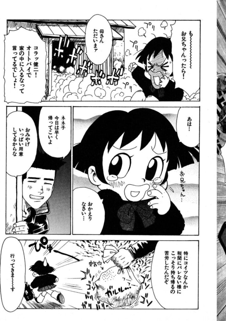 ネネ子のイケメンの兄・健二(けんじ)が久しぶりに旅から帰ってきた!!この機会に結ばれようと企むネネ子の同級生も現れたが、健二の極小サイズち●こに幻滅して泣きながら去っていった……。しかし、このち●こには秘密があって……見た目は小指並みだけど、触るとデカチン!?