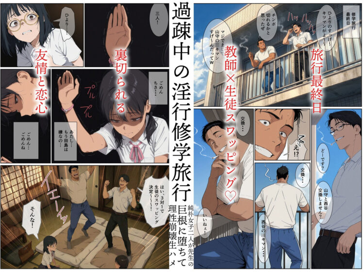 エロ漫画:過疎中の淫行修学旅行〜純朴女子二人が先生の巨根に堕ちて理性崩壊生ハメ hitomi hitomi