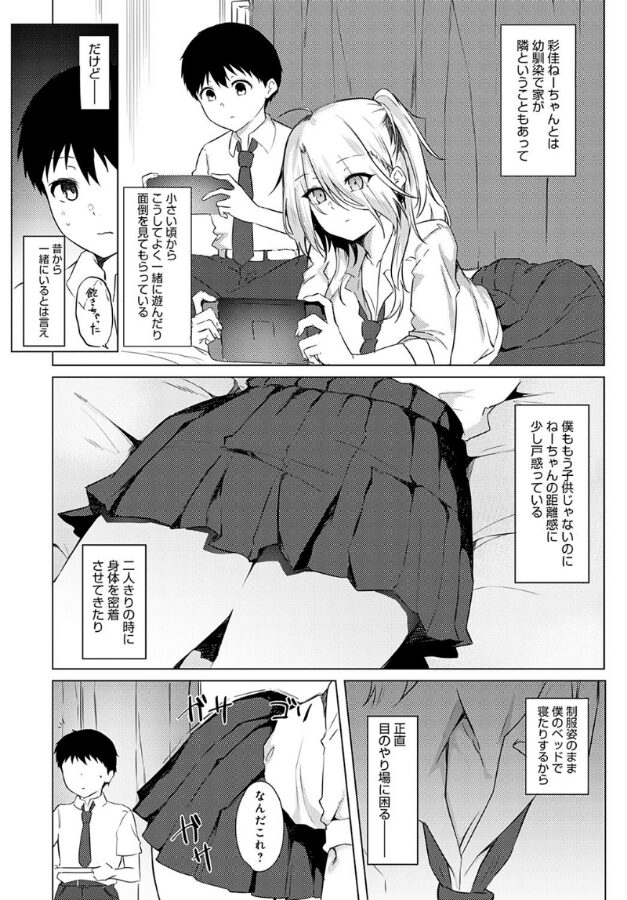 ゆーちゃんの部屋に勝手に入り浸る幼馴染でギャルな彩佳は、子供時代の距離感のままで、ゆーちゃんはドキドキしっぱなし。 ある日、目を離した隙にゆーちゃんの秘蔵AVを見つけ出した彩佳は、焦るゆーちゃんを尻目に「そんなに興味あるならしてみる?」と突然誘ってくる。 セックスが初めてのゆーちゃんに、彩佳は制服のままねっとりフェラや熱血手マン指導が始まって–☆ りぷ先生描く、えっちな巨乳お姉ちゃんと実践性教育♪
