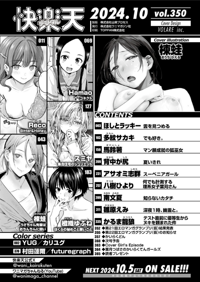 - 作者 : 楝蛙 YUG ほしとラッキー Reco かるま龍狼 スミヤ 馬鈴薯 村田蓮爾 Hamao 雛原えみ 八樹ひより 背中が尻 南文夏 橙織ゆぶね アサオミ志群 多紋サカキ
