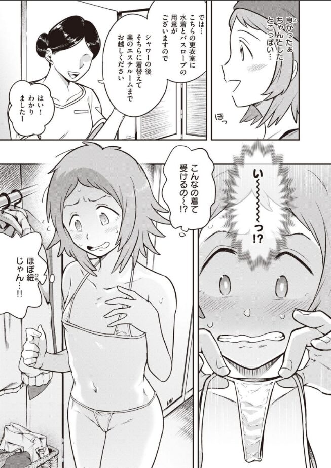 祝・大学デビュー!! さらに自分に磨きをかけるため初エステに訪れたのだが……。きわどい水着に着替えさせられ、なぜかアイマスクとヘッドホン着用して施術を受けることに。オイルマッサージは気持ちいいけれど、だんだんと敏感な箇所だけを執拗に攻められてしまって!?