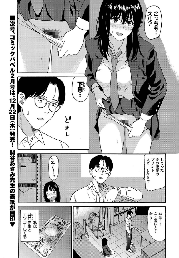 とある事件があってから教師の井口と援●交際の関係になった下田。日を増すごとにエスカレートする井口のアブノーマルな要求にまんざらでもない彼女だったが、密かに彼に想いを寄せる友人の千聡にその関係がバレてしまい…!? 教師と生徒…さまざまな想いが複雑に交錯する歪んだ関係から目が離せない!! 今話題の個性派コミッカー・鉢本先生が描くココロざわつく歪なアオハル官能譚!!