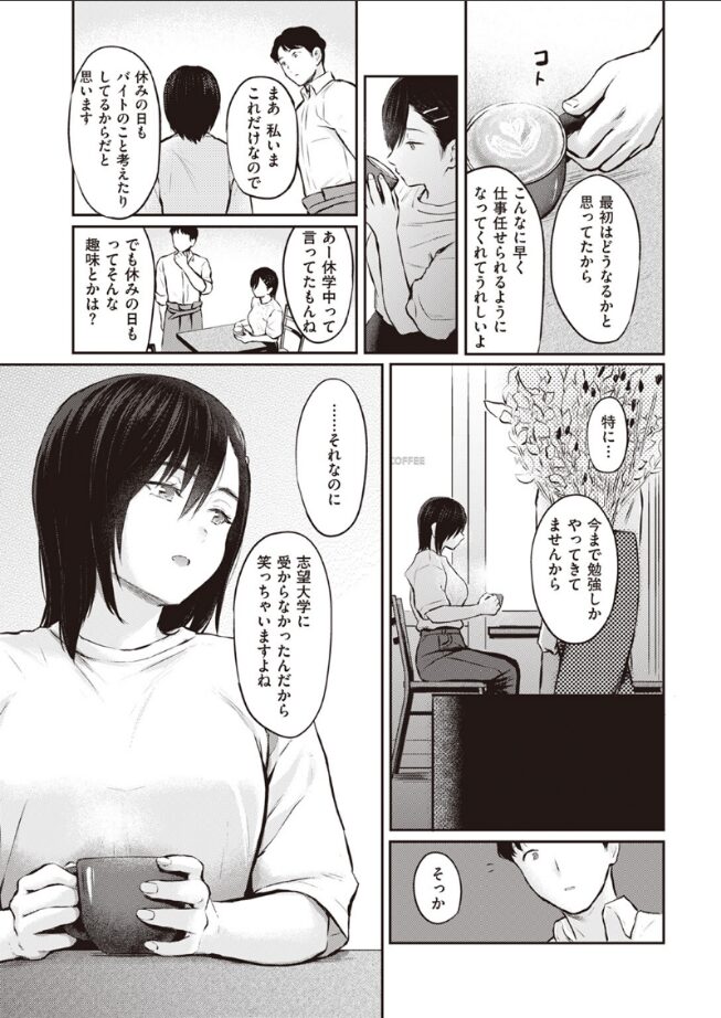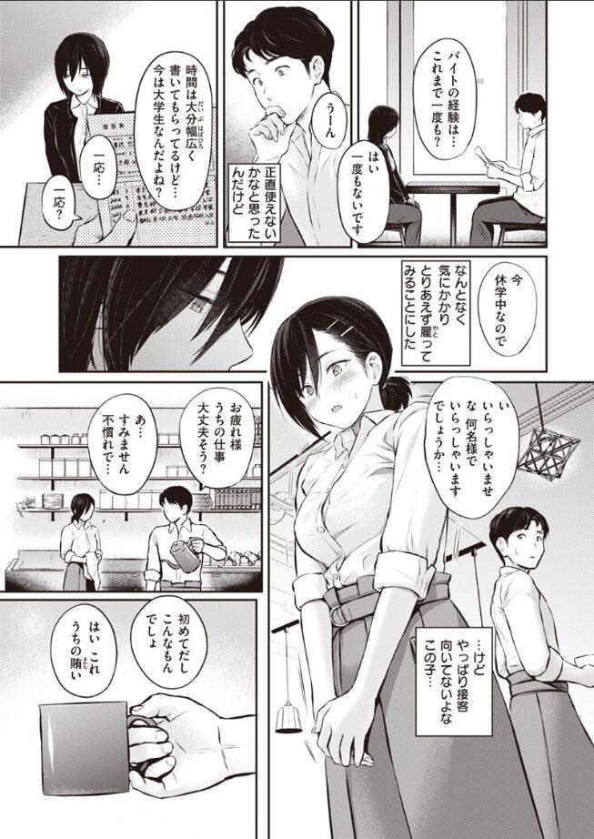 「私…店長さんとえっちするのが好きみたいです」カフェにバイトの面接で来たのは、休学中の女子大生・華原悠月(かはらゆづき)。表情も暗くて見るからに接客には不向きだが、なぜか気になって雇ってみることに。しばらしくて流れで悠月と関係を持ってしまうと、彼女はその後も会う度にすぐエッチを求めるようになり……。カラダを重ねる度に、淫らに感度も上がり開発されていく悠月。だが時折見せる不安げな表情が気になり、気分転換のためエッチなしのドライブへ誘ってみたが……。