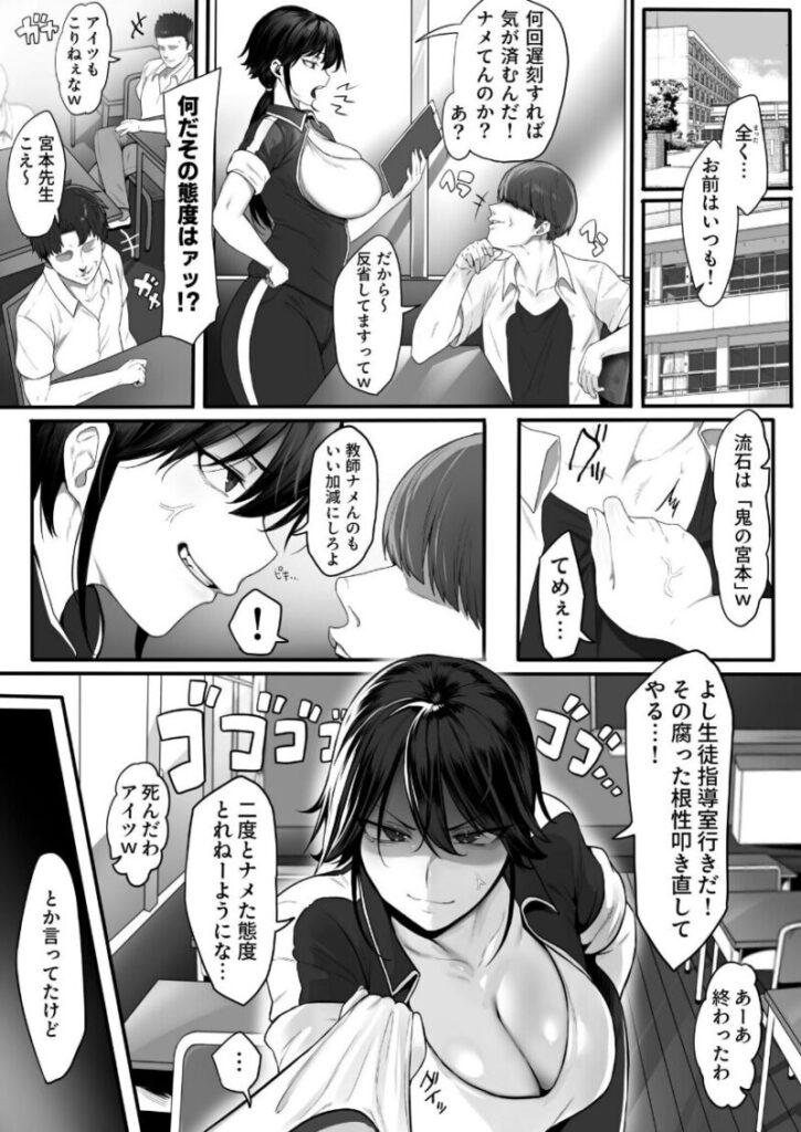 『明日からの指導…楽しみしてますね』女教師・宮本は鬼と呼ばれるほどに厳しく生徒に指導をしていた。今日も不良生徒・山田を指導室に連れていくが…!?「ほぉらイけ…」「イけッ」山田の激しい攻めワカらされ、宮本のメスの部分が剥き出しになっていく!