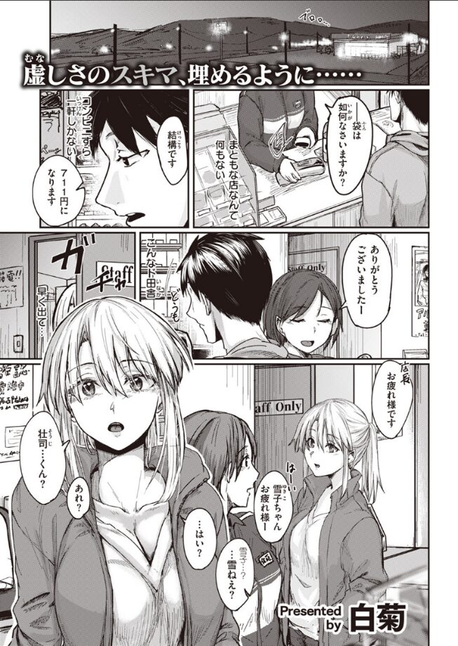 「ほ〜〜らっ 卒業おめでとう♪」ド田舎を早く出たくて東京の大学へ進学を決めた壮司(そうじ)は、近所のコンビニで偶然年の離れた幼なじみの雪(ゆき)ねぇと再会する。懐かしさから昔の話をする中、雪ねぇがカレシと一緒にいるところを見てしまい幼心にショックを受けたと明かす壮司。未だに引き摺っている壮司を上京前に克服させようと雪ねぇが筆おろししてくれることに!?年上のお姉さんから優しく手ほどきされる甘々中出しSEXで童貞卒業♪