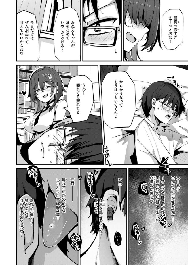 「射精するならおねーちゃんにちゃんとお願いしないとね」クラスメイトのギャル・月本(つきもと)に部屋に入り浸られている倉橋(くらはし)。彼女のお目当ては最新型の高級イヤホン。ラスイチを譲る代わりに、いつでも聴きに来ていいという約束をしたものの……毎日来られちゃ自分が使うヒマが無い!ASMRオタクの倉橋は、ベストな環境で《あまあまおねえちゃんモノ》を楽しむつもりだったのだが、スマホに入れていたソレを月本に聴かれてしまった!恥ずかしすぎる秘密を知られ絶望していると、月本が耳を舐めながら《おねーちゃん》になってくれて……?