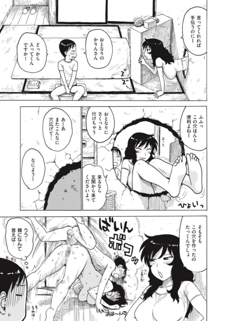 ボロアパートに住むたっくん。お風呂の件からアパートの人妻たちが色々よくしれくれるようになった。憧れのゆきなさんとも仲良くなりたいと思っていると、ゆきなさんから一晩泊めてくれないかと部屋に訪ねに来て…(単行本『よなよな』収録作品)