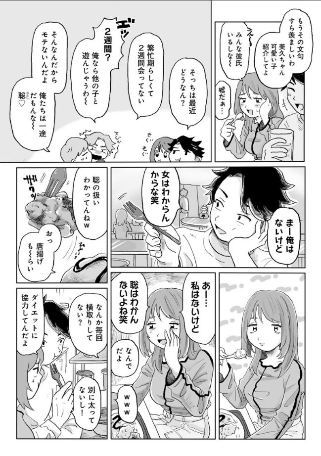 『やっぱお前ら めっちゃお似合いだわ…』周囲から羨ましがられる大学生男女。’よくできた彼女’が抱える秘密とは?学食でテーブルを囲む、カップルの聡と美久。聡の友人とも楽しく喋る仲の良い2人だったが、その夜に美久から怒りのメッセージが届く。怒りの原因が分からない聡は、美久を家に呼び、いつも通り性行為をしようとするが――?(COMICキスハグvol.5 収録作品)
