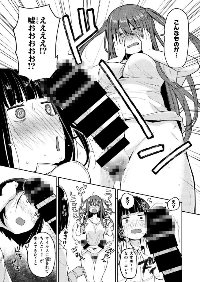 葵(あおい)が仕事から帰宅すると、同居人の茉莉(まり)が真っ赤な顔で大騒ぎ!「変なウイルスに感染したああああ!」と訴える彼女のアソコには……立派な’チンチン’が生えていて!?エロすぎる異変に困惑する2人。「射精したらなくなるとか……」茉莉が赤面しながら提案すると、葵が悪ノリしてフェラし始めて……!?友情と興奮が入り混じるフタナリルームシェアスタート!!