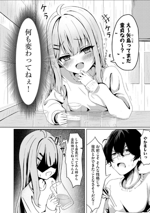 中学ぶりの同級生と集まり飲むハズが、ドタキャンに次ぐドタキャンにより、当時クソ生意気だった女子・双葉とサシ飲みすることに。しかし彼女も年相応の落ち着きを得て――いなかった。酒が入った途端に止まらない童貞煽りの挙句、自身も経験がないことが発覚。売り言葉に買い言葉で白熱した口論の末、酔いが醒めたのは何故かラブホの一室だった……!※この作品は『コミックB地区 Vol.5』に収録されています。重複購入にご注意ください。