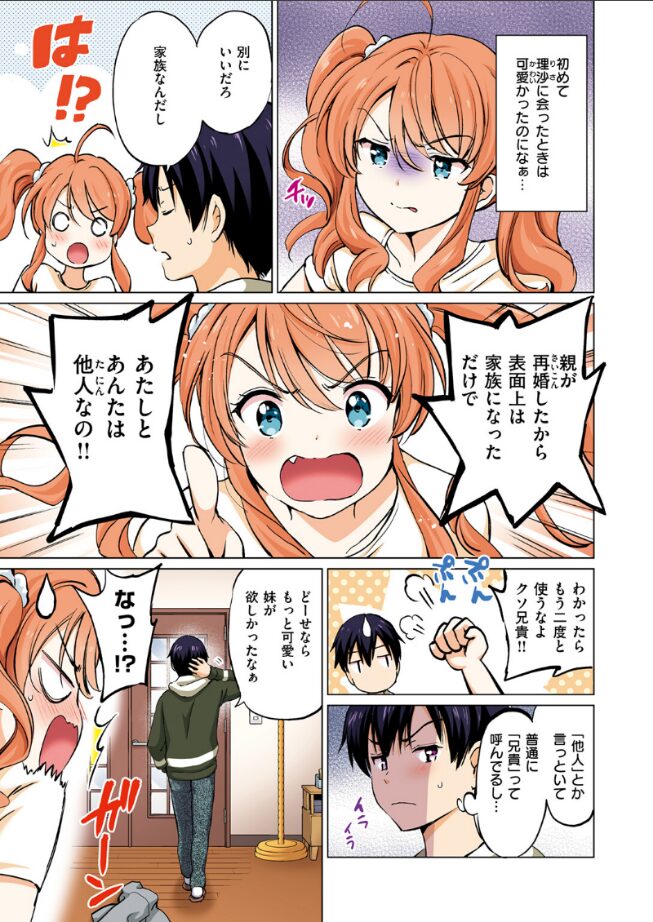 人気マンガのフルカラー版!!親の再婚で義理の兄妹になった、理沙(りさ)と俺。昔はあんなに可愛かったのに、今は俺を「クソ兄貴」と呼び足蹴にする始末。そんなふうにナマイキに育ってしまった理沙だが、ある日、その理沙が俺のことを「お兄ちゃん」と呼びながら部屋でオナニーしているのを目撃!?そんなかわいい妹の姿を見たら……ガマンできるわけがなく……!?ツンデレ妹とのいちゃラブ性活をコミカルに描いた前後編40ページ!!