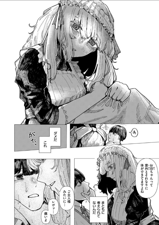 広大なお屋敷で、親の愛を知らずに寂しく暮らすお坊ちゃんと、彼の世話係を仰せつかっているメイドのレヴァ。彼女は、お坊ちゃんの父親である《ご主人様》の夜の相手でもあった……。自分が飽きられて捨てられたことがわかったとき、レヴァが取った行動とは……。